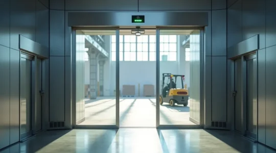 Im Gebäude übernehmen Zugangsmanagement-Systeme die Kontrolle: Vereinzelungsanlagen wie Drehkreuze stellen sicher, dass jede Person einzeln erfasst wird. Besucherausweise mit Foto, Gültigkeitsdauer und Zonenbeschränkung verhindern unbefugtes Umherstreifen. Die Zonierung im Lager trennt allgemein zugängliche Bereiche von sensiblen Zonen, in denen nur autorisiertes Personal Zutritt hat. Gleichzeitig muss bei Brand eine Notöffnung aller Türen garantiert sein – Sicherheit bedeutet immer auch Fluchtwegsicherung.